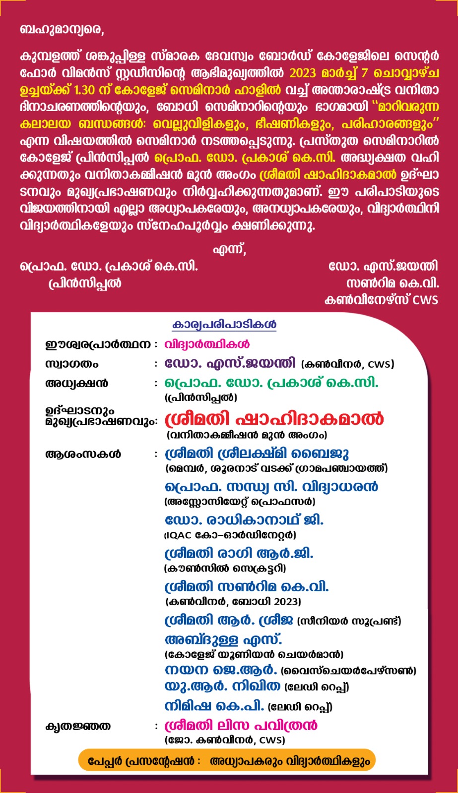 അന്താരാഷ്ട്ര വനിതാ ദിനം & ബോധി സെമിനാർ