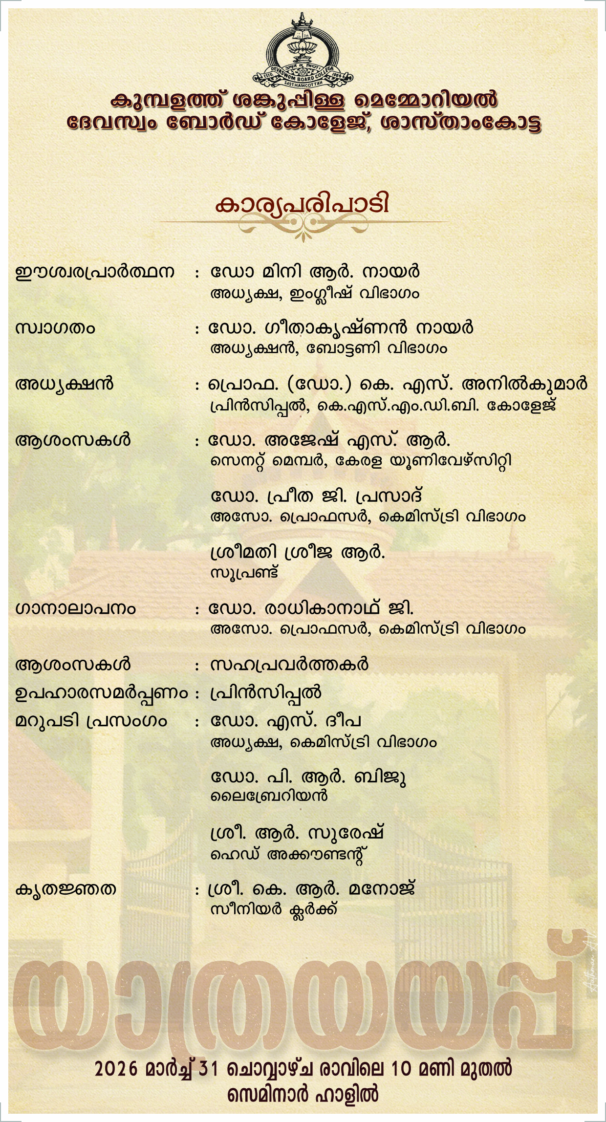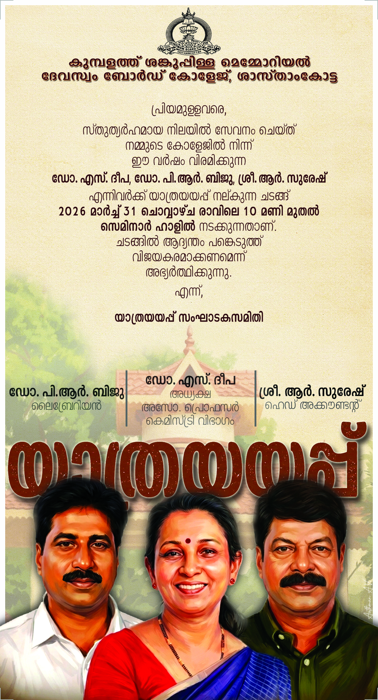 Sasthamcotta – Affiliated to University of Kerala – Managed by Travancore Devaswom Board