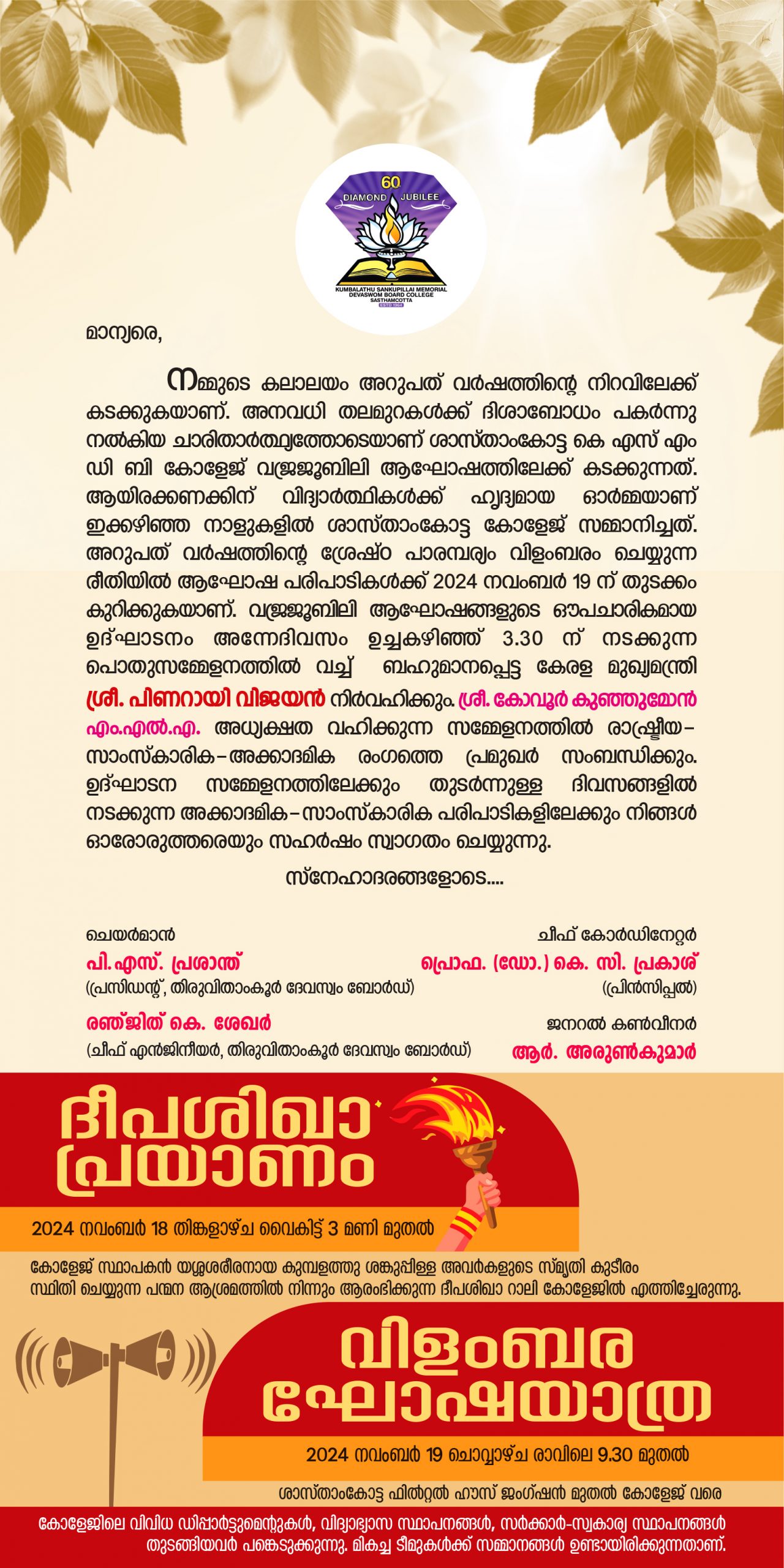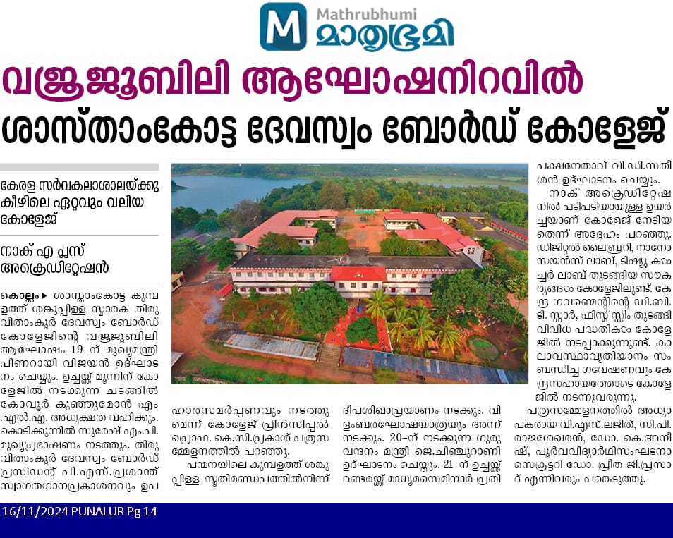 Sasthamcotta – Affiliated to University of Kerala – Managed by Travancore Devaswom Board