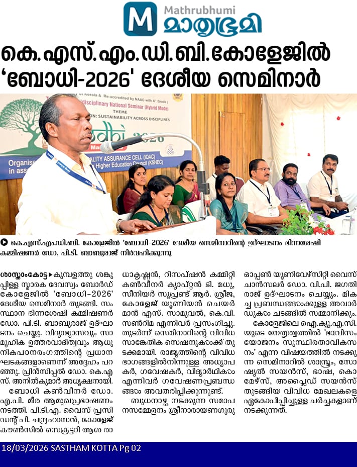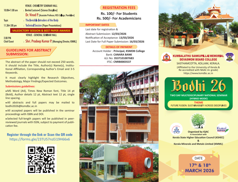 Sasthamcotta – Affiliated to University of Kerala – Managed by Travancore Devaswom Board