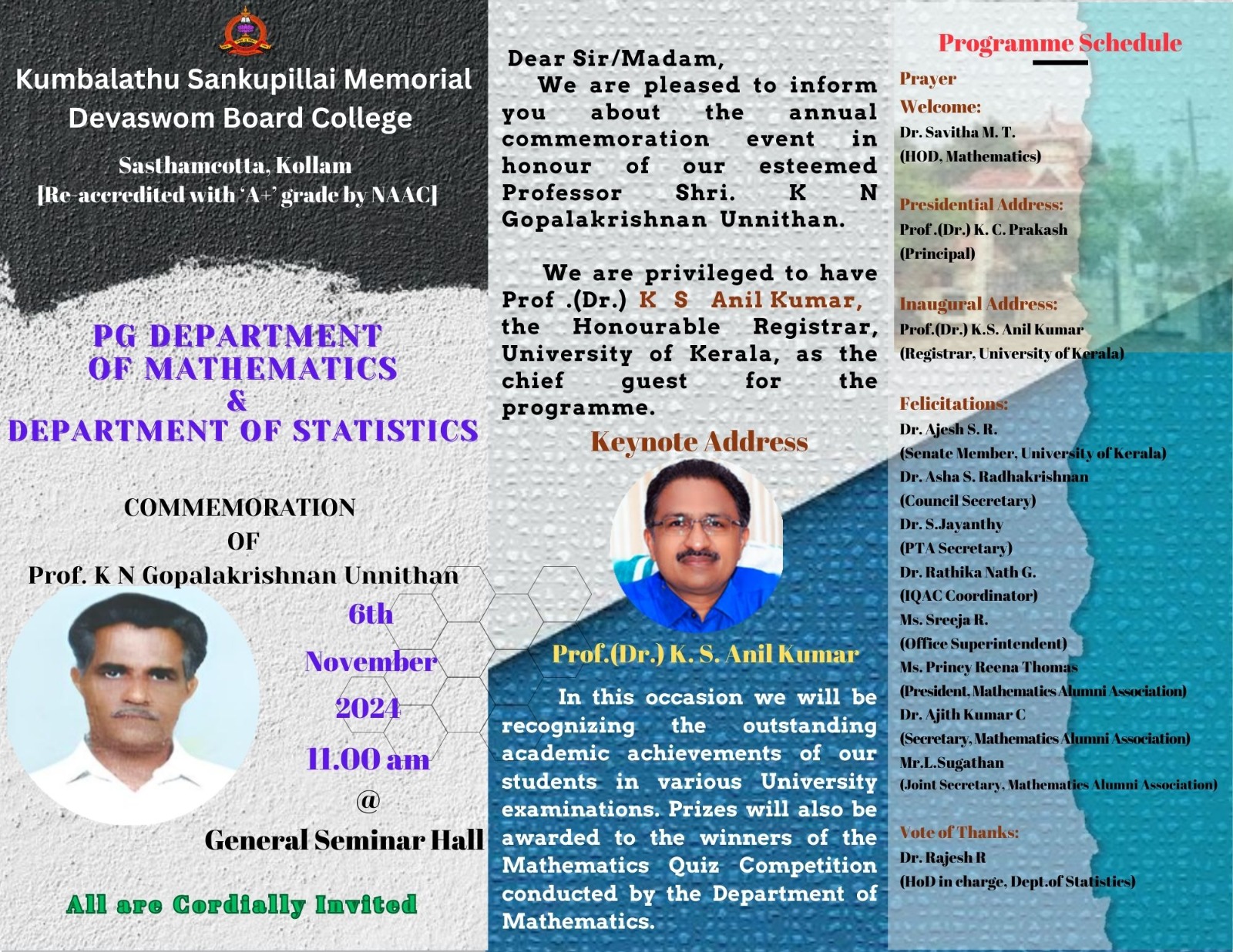 COMMEMORATION OF PROF. K. N. GOPALAKRISHNAN UNNITHAN