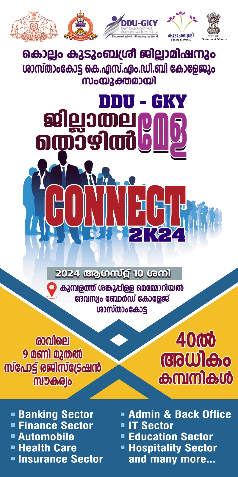 കൊല്ലം കുടുംബശ്രീ ജില്ലാമിഷനും ശാസ്താംകോട്ട ഡി ബി കോളേജും സംയുക്തമായി മെഗാ തൊഴിൽ മേള 10.8.2024 ശനിയാഴ്ച ശാസ്താംകോട്ട ഡി ബി കോളേജിൽ വെച്ച് നടത്തുന്നു. തൊഴിൽ മേളയിൽ പങ്കെടുക്കാൻ താല്പര്യമുള്ളവർക്ക് ചുവടെ കൊടുത്തിരിക്കുന്ന ലിങ്കിൽ സൗജന്യ ഓൺലൈൻ രജിസ്ട്രേഷൻ ചെയ്യാവുന്നതാണ്.....