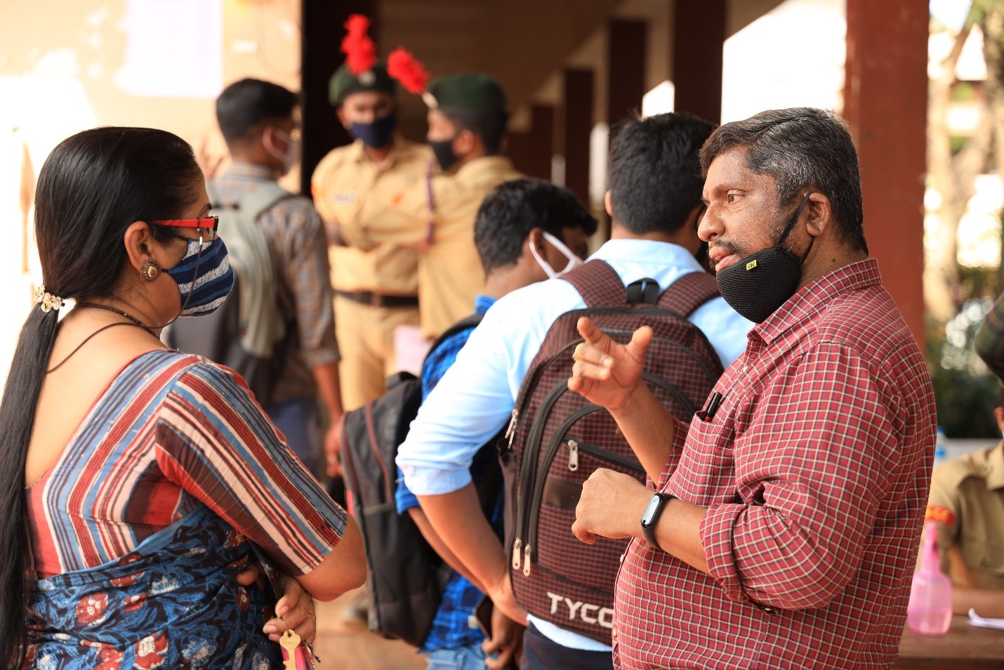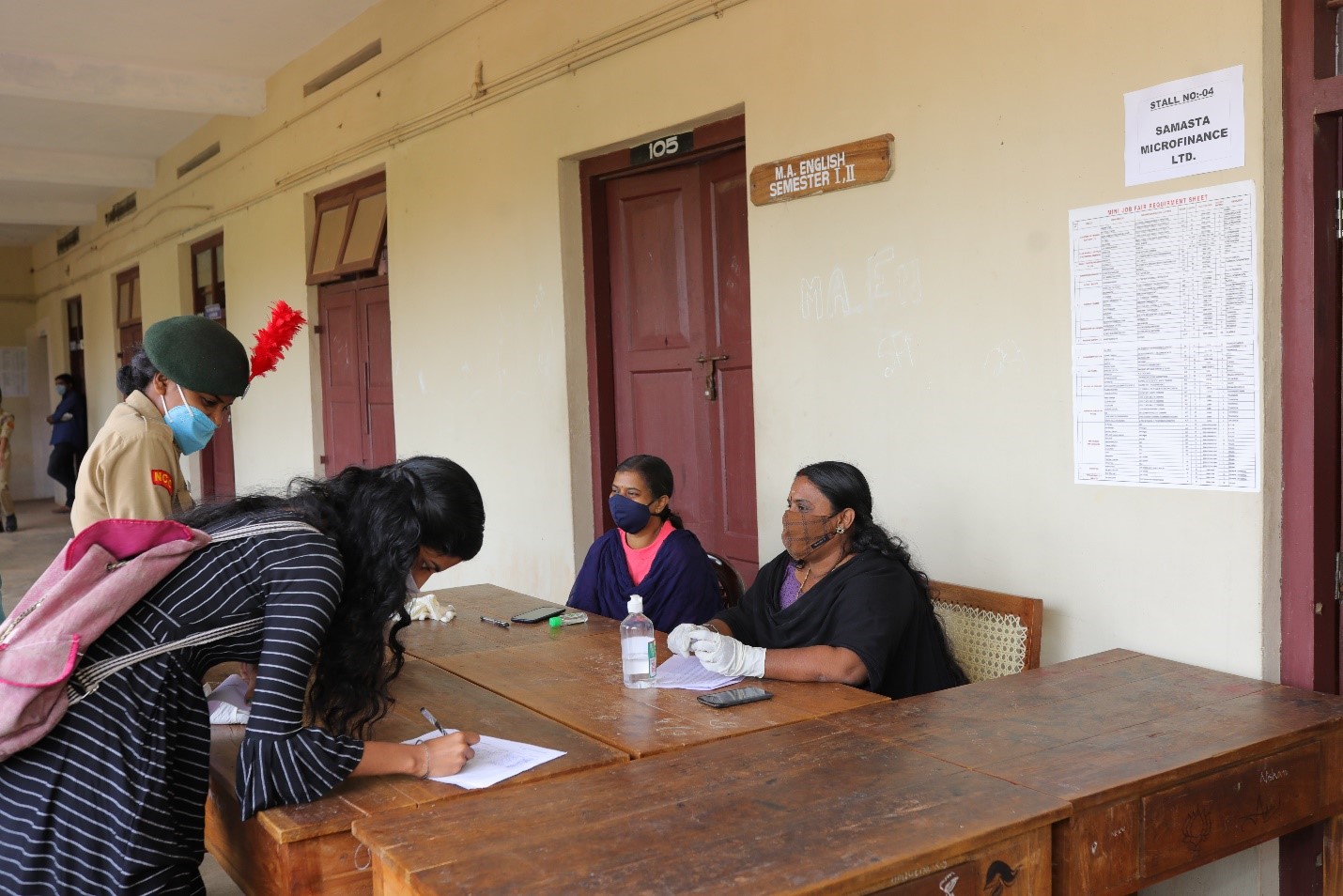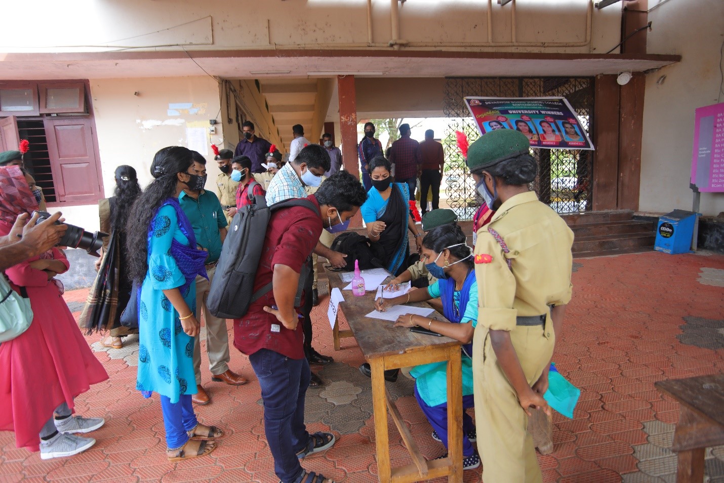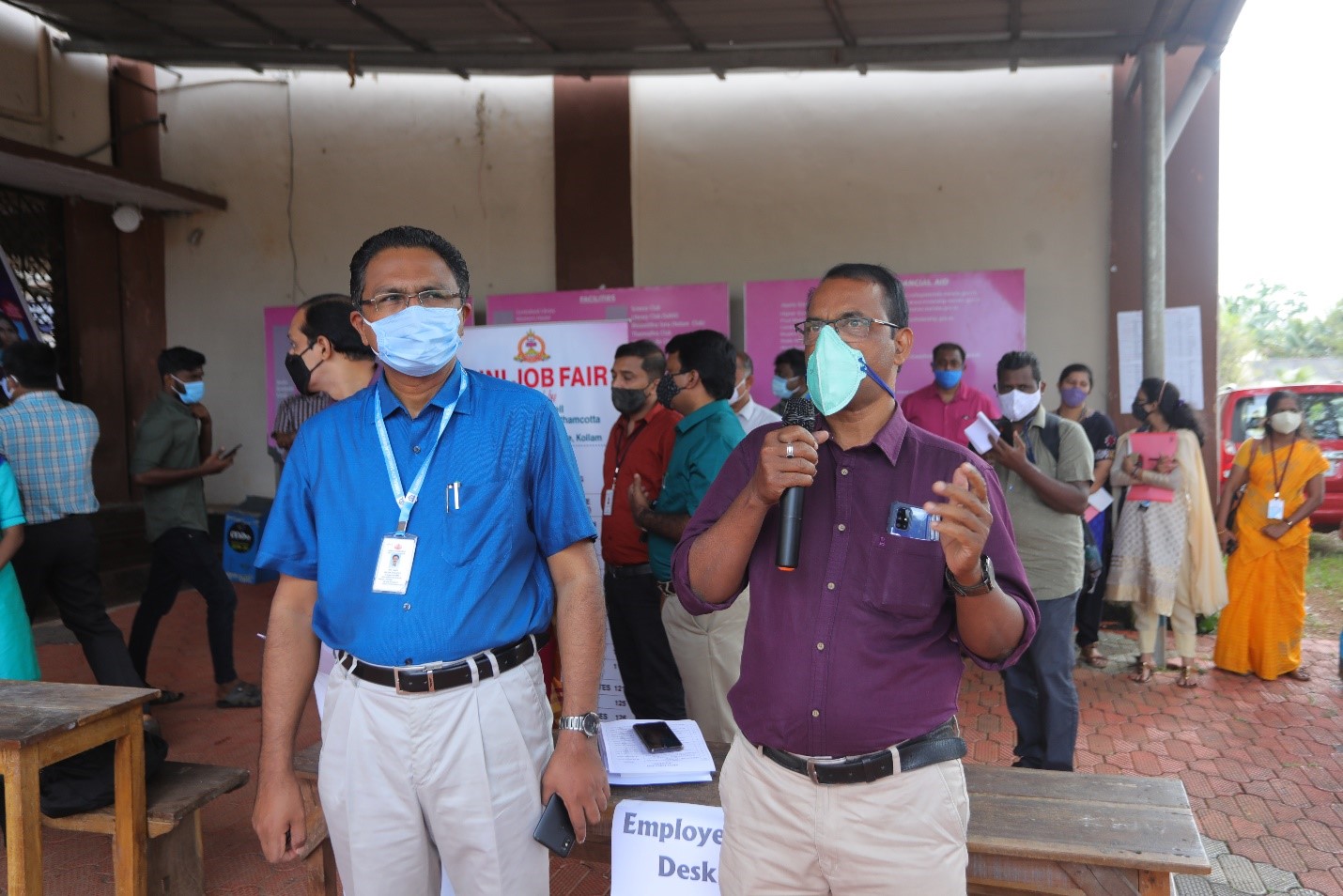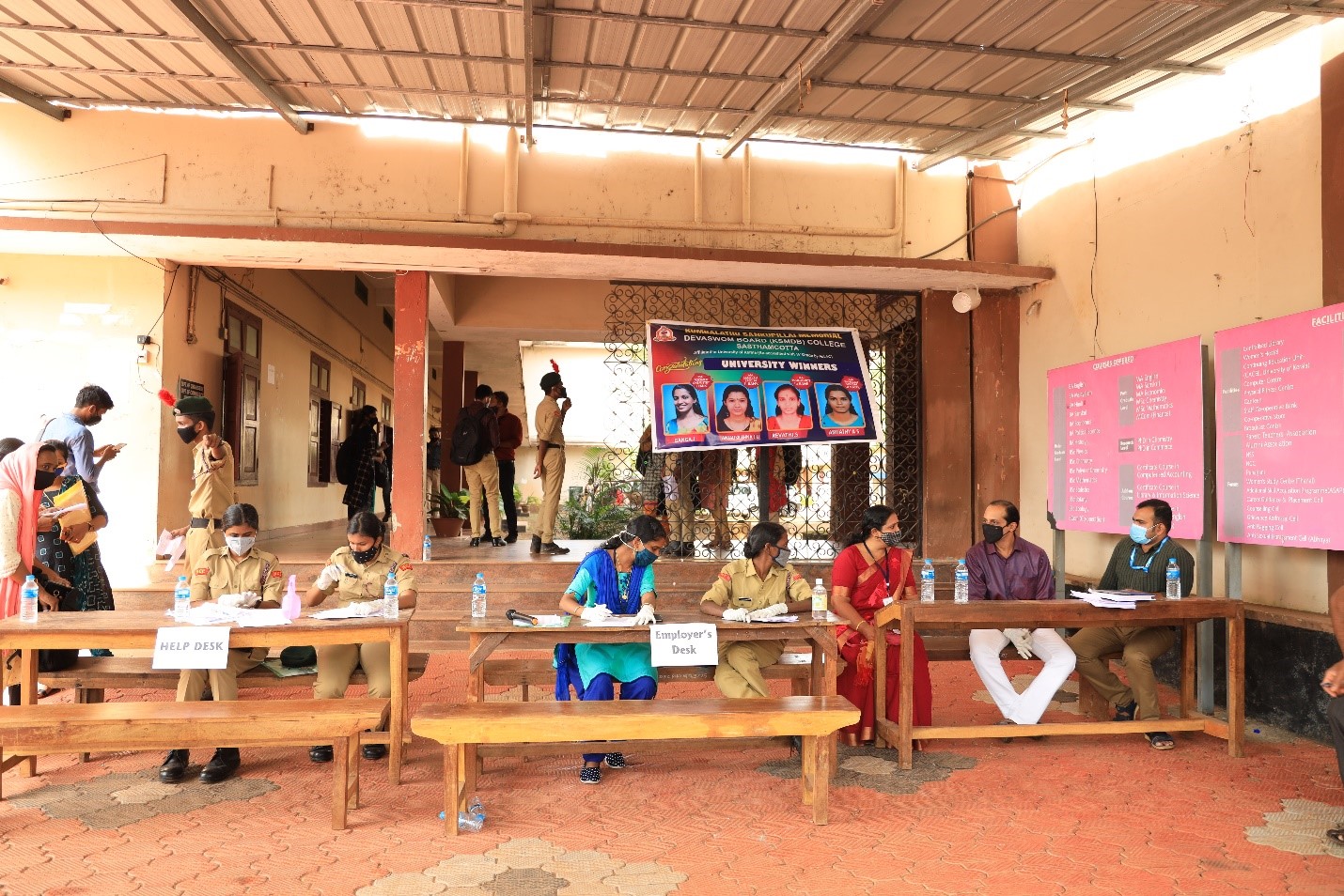 The Placement cell of KSMDB College in collaboration with the District Employability Centre, Kollam, Government of Kerala organized a Mini Job Fair in the campus on January 15, 2021. Fifteen reputed organizations from diverse fields participated with more than seven hundred reported vacancies. Participation was confirmed through online registration and it was limited to those who were with educational qualification of Plus Two (pass) and above within the age limit of thirty five years. More than thousand candidates registered online and were given time slot to attend the fair which was conducted strictly following Covid Protocol. The Fair began at 10:00 am with Parvathi. S, Convener, Placement Cell with her welcome speech. Dr. K S Anil Kumar, Principal, KSMDB College, Sasthamcotta presided over the meeting and Dr. V Jayasree, Coordinator, IQAC, Dr. Sushil Kumar R, Coordinator, NAAC, Lt. Dr T Madhu, ANO, NCC, and Dr. Ajesh S R, Member, Placement Cell felicitated the meeting. Sunrima K V, Joint Convener, Placement Cell proposed Vote of Thanks. Fifteen classrooms were converted to fifteen interview rooms and NCC Cadets were deployed outside each rooms to ensure the strict observance of Covid protocol as well as discipline. NCC wing of the college set up a food stall with breakfast, tea and light refreshment at the main entrance.