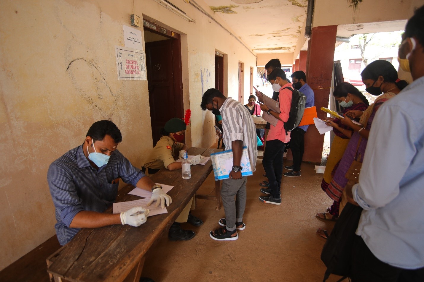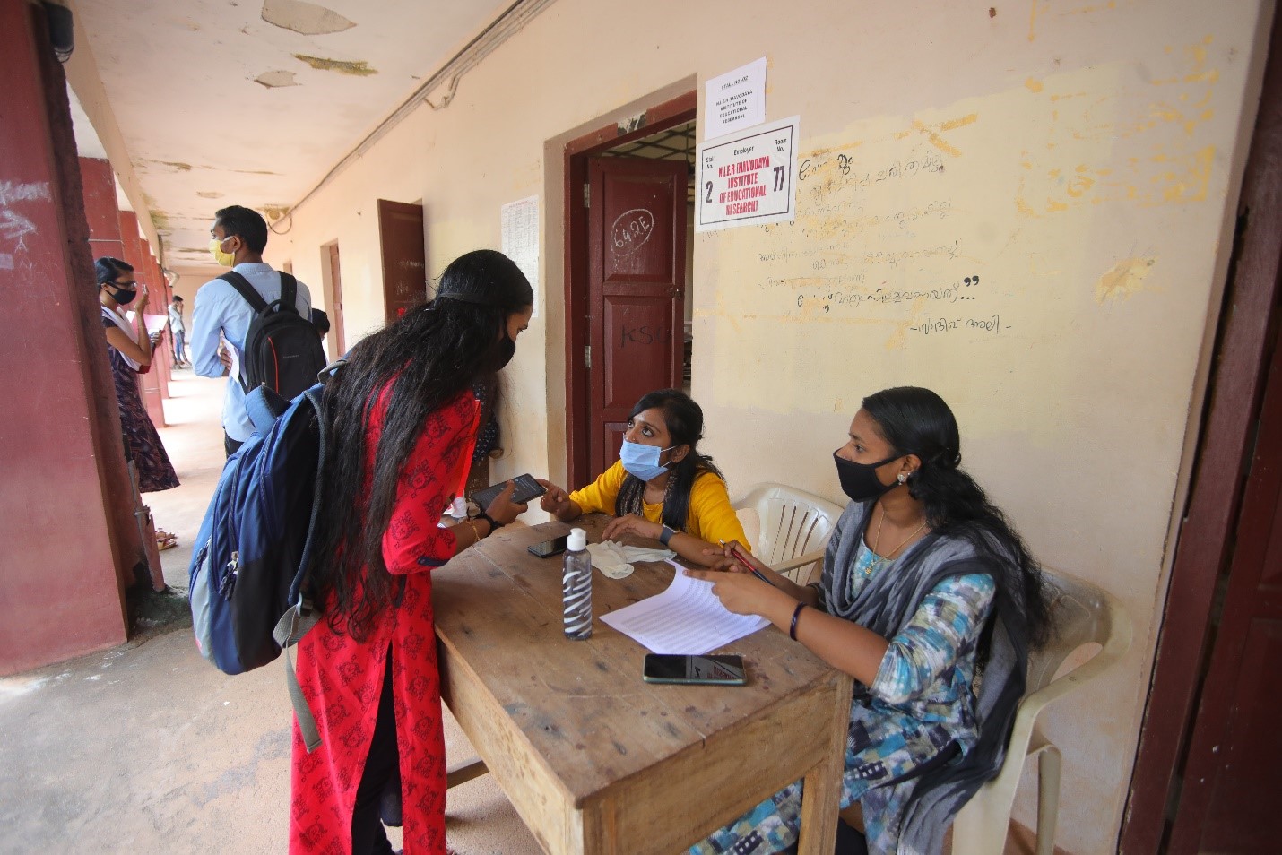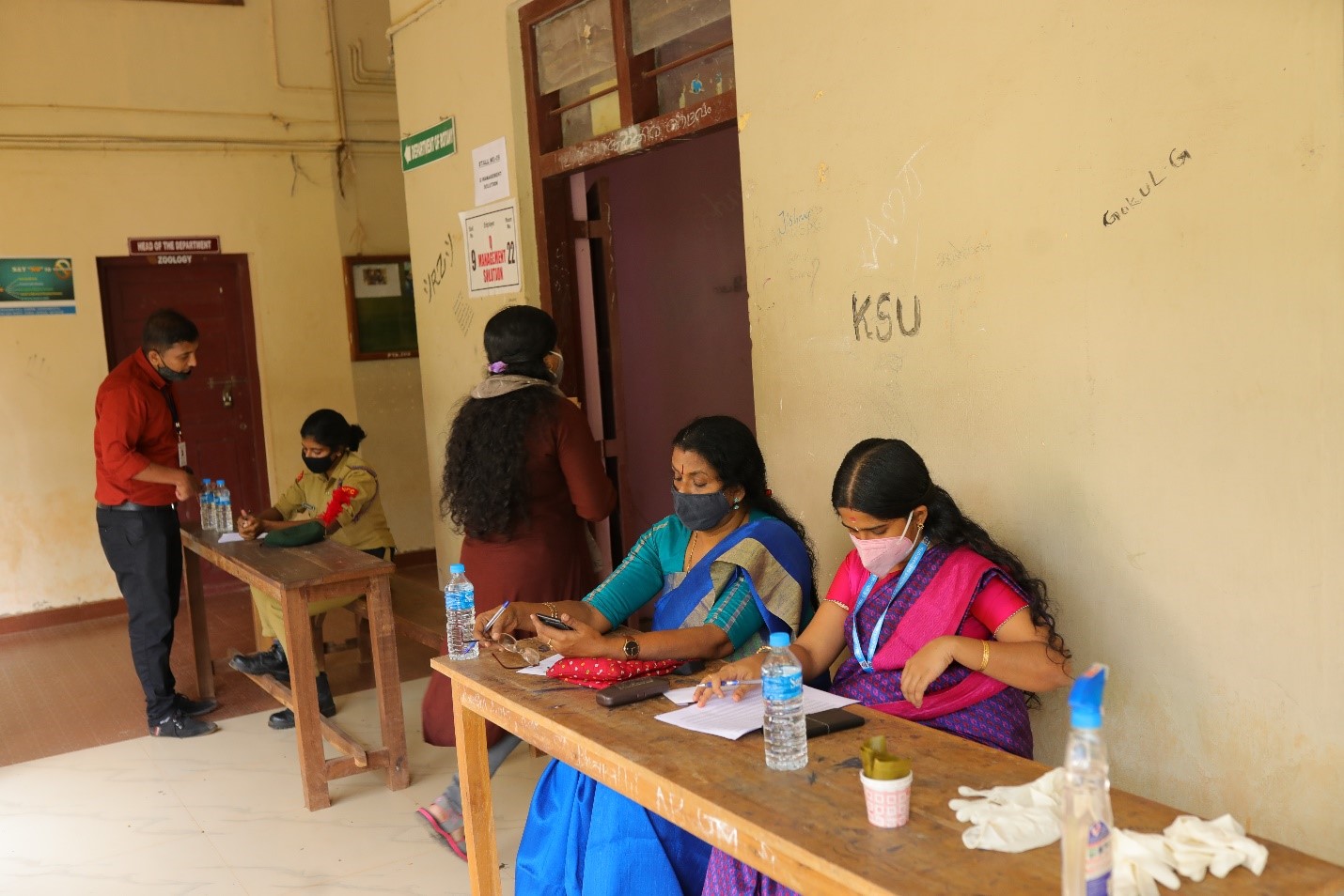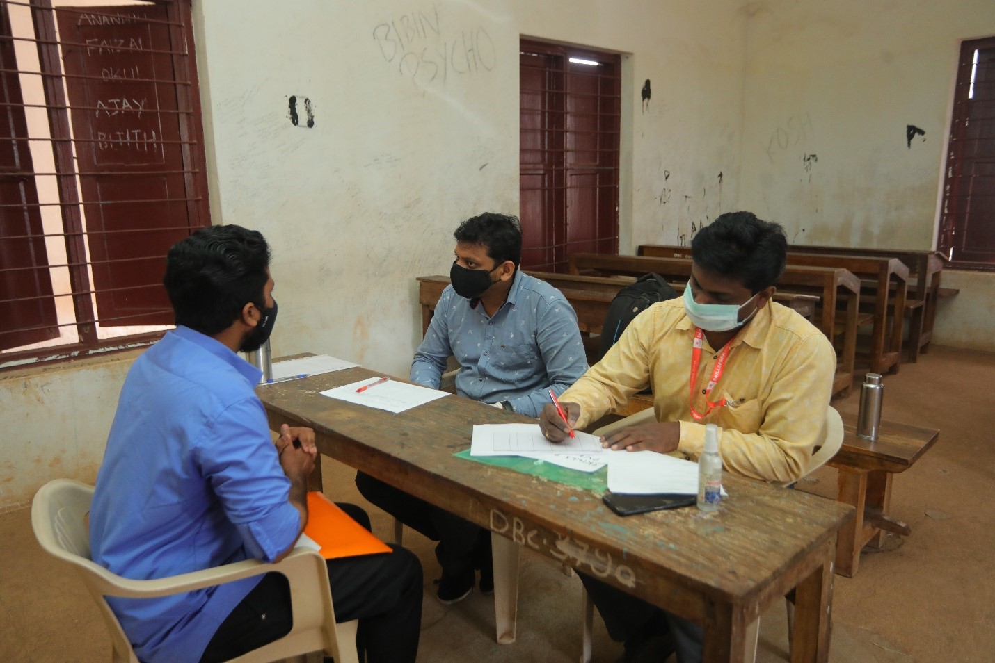 The Placement cell of KSMDB College in collaboration with the District Employability Centre, Kollam, Government of Kerala organized a Mini Job Fair in the campus on January 15, 2021. Fifteen reputed organizations from diverse fields participated with more than seven hundred reported vacancies. Participation was confirmed through online registration and it was limited to those who were with educational qualification of Plus Two (pass) and above within the age limit of thirty five years. More than thousand candidates registered online and were given time slot to attend the fair which was conducted strictly following Covid Protocol. The Fair began at 10:00 am with Parvathi. S, Convener, Placement Cell with her welcome speech. Dr. K S Anil Kumar, Principal, KSMDB College, Sasthamcotta presided over the meeting and Dr. V Jayasree, Coordinator, IQAC, Dr. Sushil Kumar R, Coordinator, NAAC, Lt. Dr T Madhu, ANO, NCC, and Dr. Ajesh S R, Member, Placement Cell felicitated the meeting. Sunrima K V, Joint Convener, Placement Cell proposed Vote of Thanks. Fifteen classrooms were converted to fifteen interview rooms and NCC Cadets were deployed outside each rooms to ensure the strict observance of Covid protocol as well as discipline. NCC wing of the college set up a food stall with breakfast, tea and light refreshment at the main entrance.