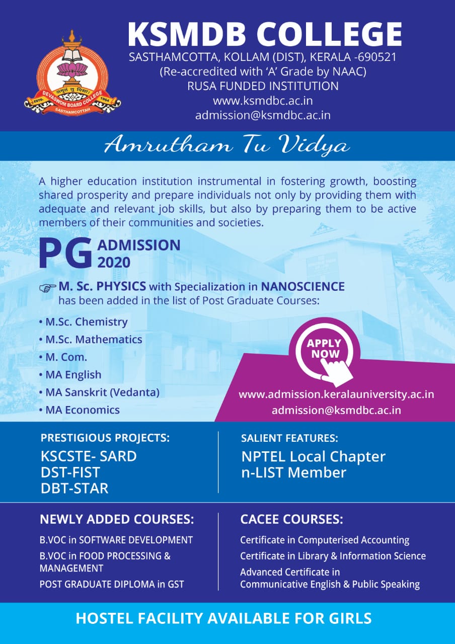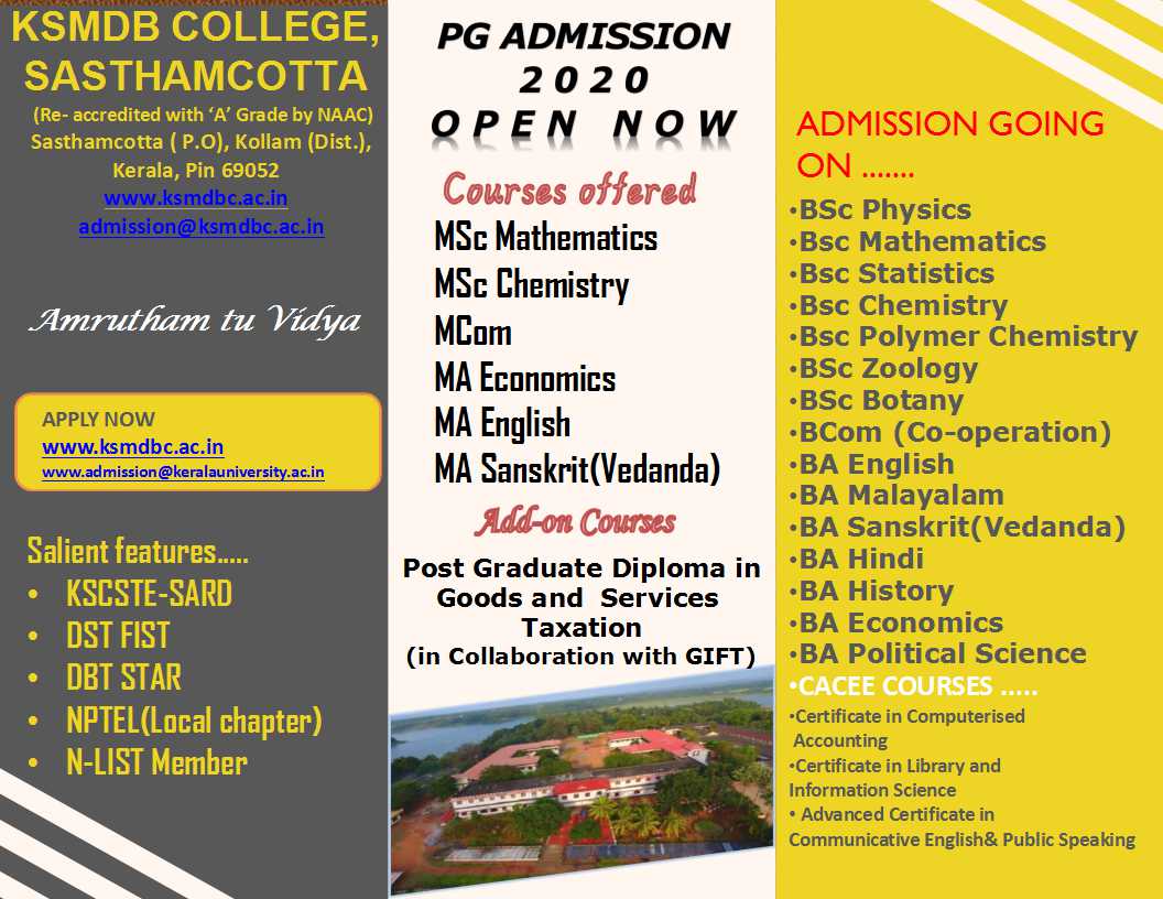 Sasthamcotta, Kerala 690521 | 0476-2830323 | principal@archive.ksmdbc.ac.in