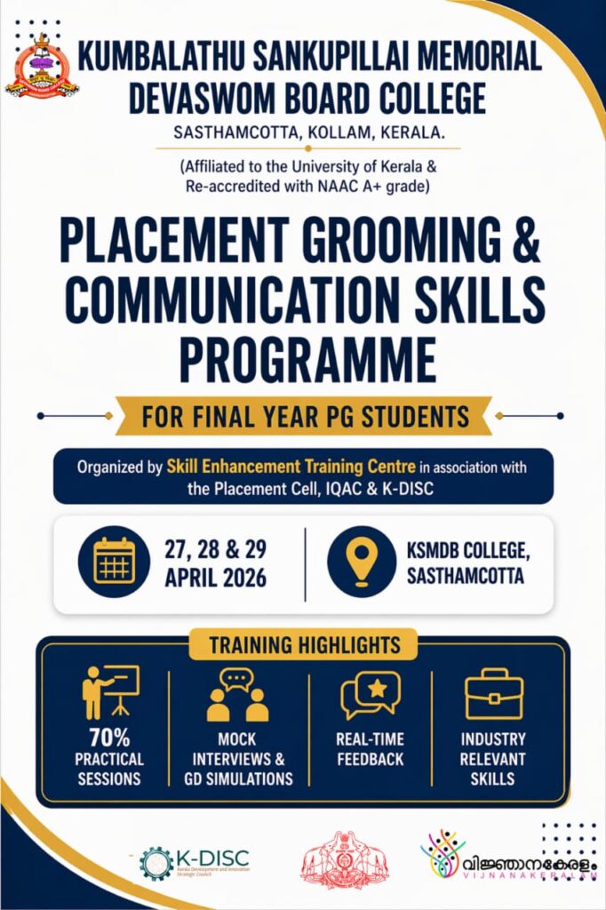 Sasthamcotta – Affiliated to University of Kerala – Managed by Travancore Devaswom Board